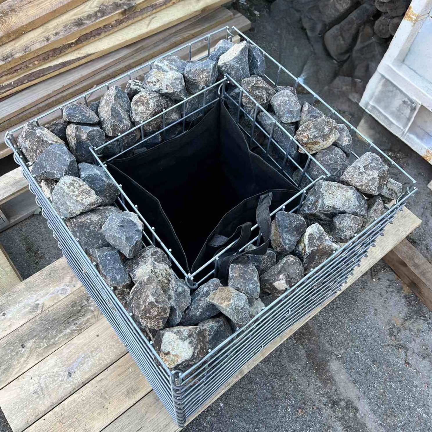 Este gavión jardinera de exterior se utiliza como elemento decorativo y como soporte para plantas. Permite rellenarse con piedras decorativas, creando una base sólida y visualmente atractiva. Al mismo tiempo, funciona como jardinera decorativa, ideal para flores, plantas ornamentales y pequeños arbustos.