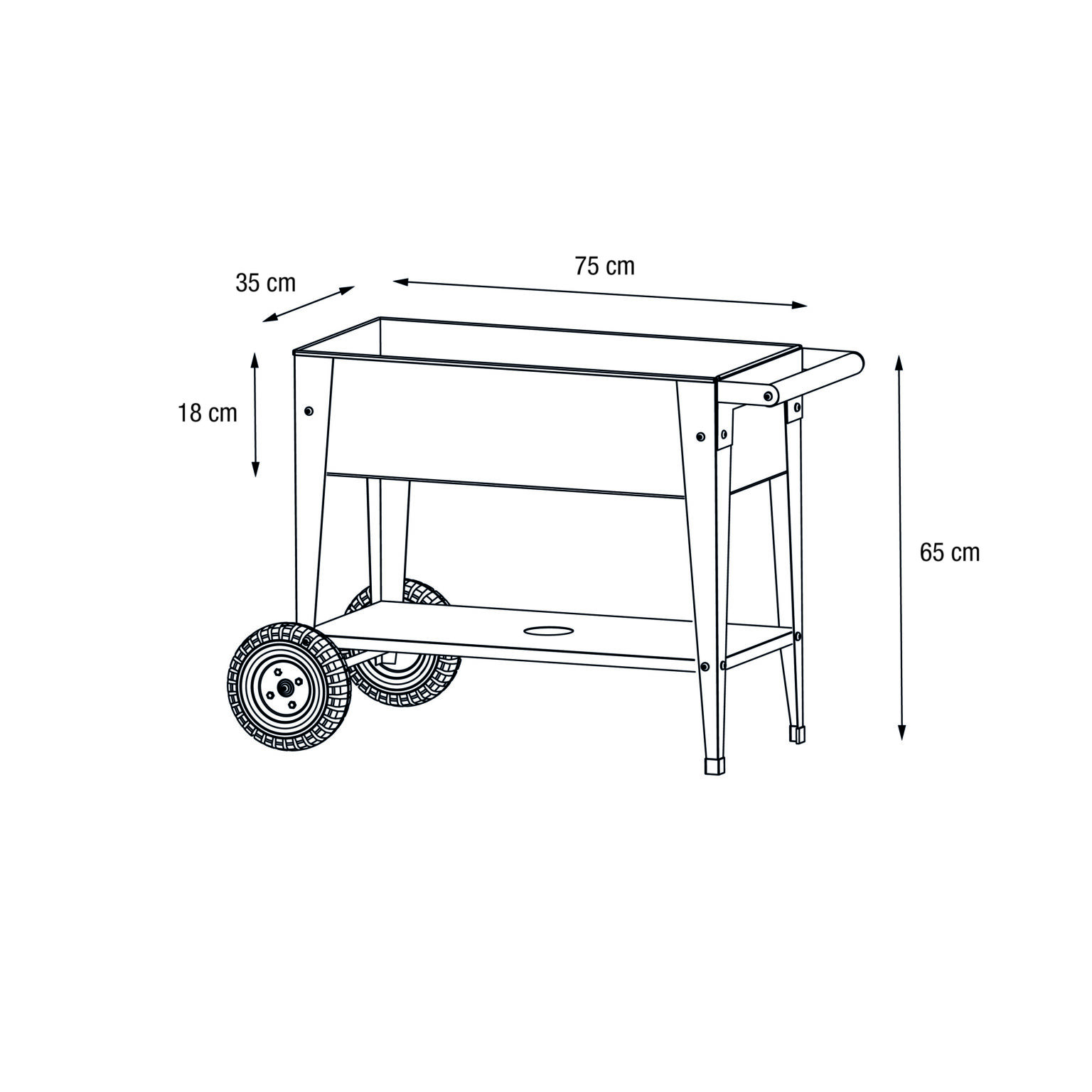 Este carrito de cultivo ayuda a los más pequeños a aprender sobre plantas, flores y verduras, fomentando la creatividad y el contacto con la naturaleza. La superficie ofrece espacio suficiente para macetas, semillas y herramientas pequeñas. Por eso, se convierte en un aliado perfecto para proyectos educativos y familiares. También puede usarse como elemento decorativo, colocando plantas o accesorios que realcen cualquier rincón del hogar o jardín.