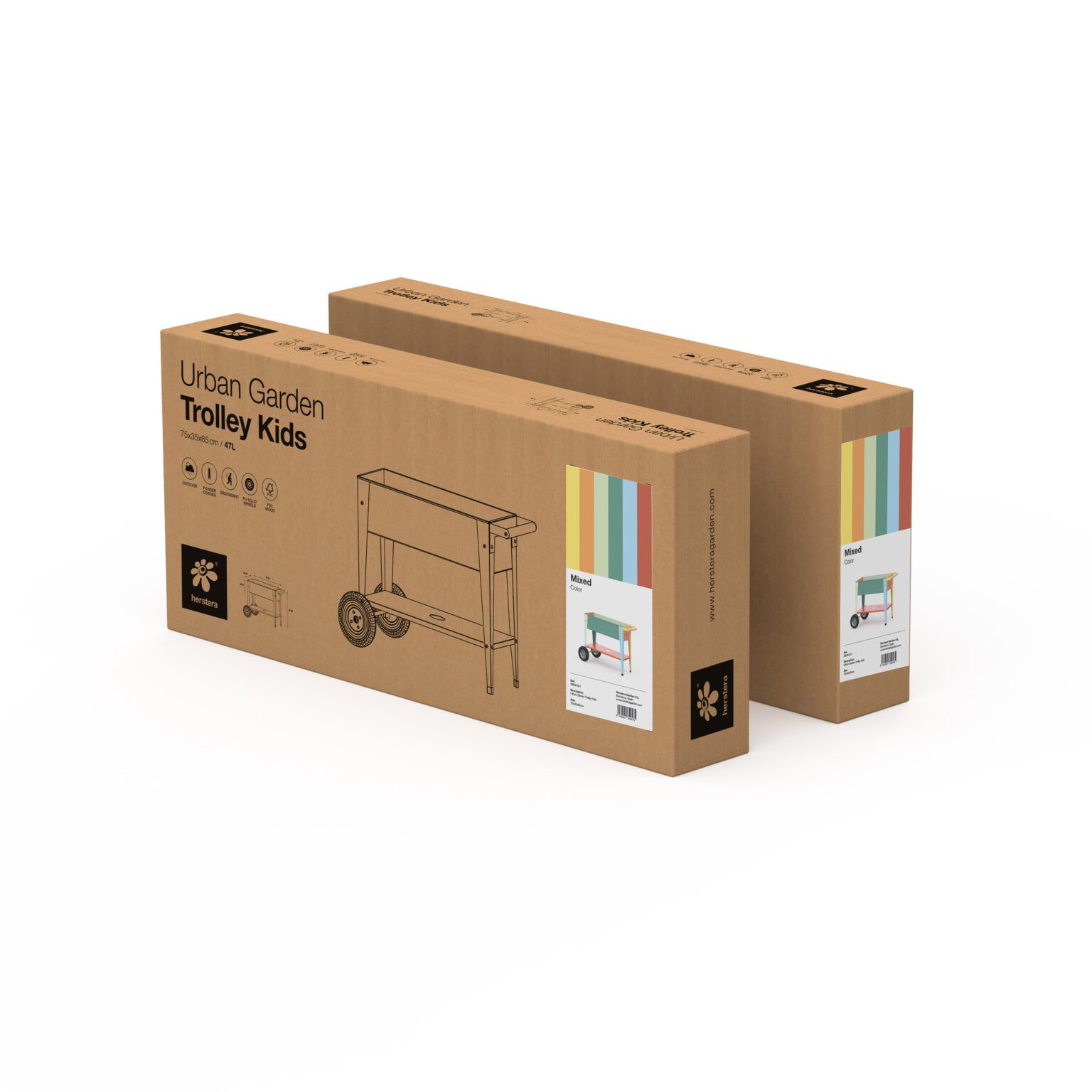El huerto urbano infantil (Urban Garden Trolley Kids) de Herstera permite que los niños disfruten de la jardinería urbana de forma segura y divertida. Está fabricado en acero galvanizado, lo que le aporta resistencia y ligereza. Su diseño compacto (75×35×65 cm) facilita colocarlo en balcones, terrazas, patios o huertos urbanos. Además, su acabado en colores mixtos aporta un toque alegre y decorativo al espacio.